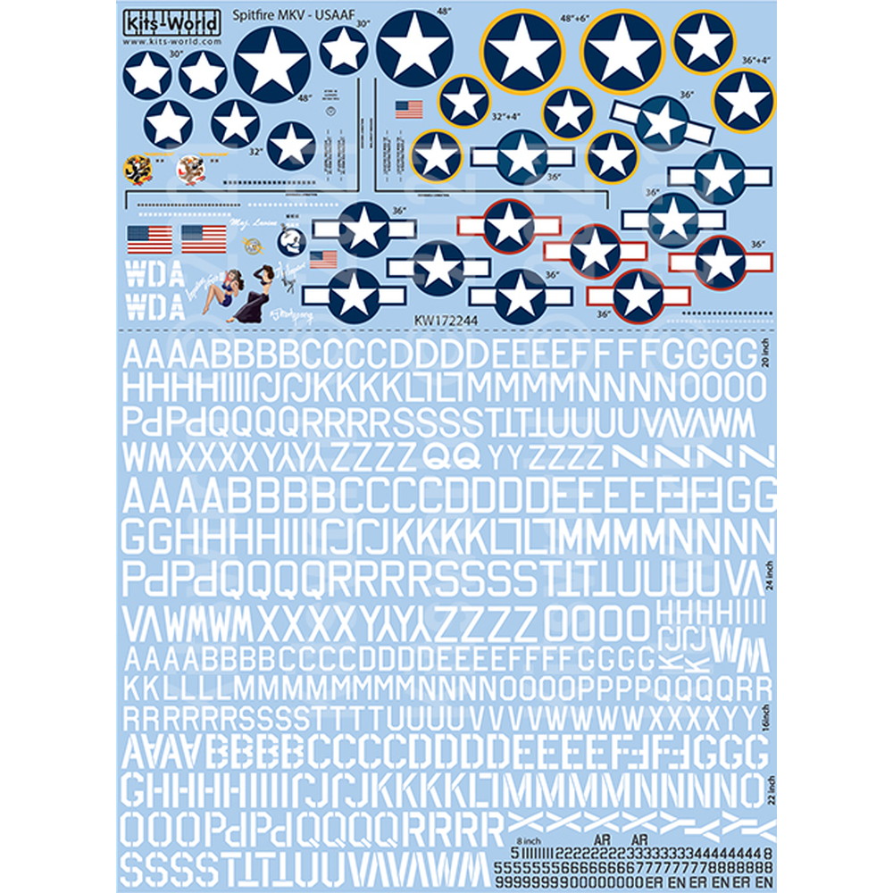 このセットではUSAAFによって運営されたスピットファイアのMKVbのノーズアートやラウンデル、レタリングや数字などを収録しています。