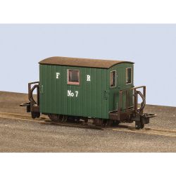 このモデルは、OO-9、1/76スケールでブレーキコーチを再現したモデルです。フェスティニオグ鉄道が1908年から採石場の客車を改造して製作した貨物列車用のブレーキコーチを再現。