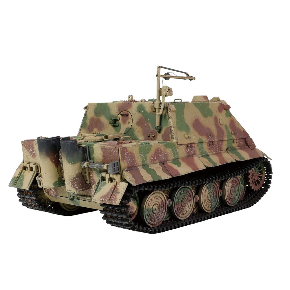 第1号車はその後、東部戦線へ送られ、実験任務に投入。最終的に1944年8月から12月に18輌が完成したのみでしたが、これは新規生産ではなく、損傷したティーガーIが修理のため後送されるごとに1輌ずつ改造したためでした。