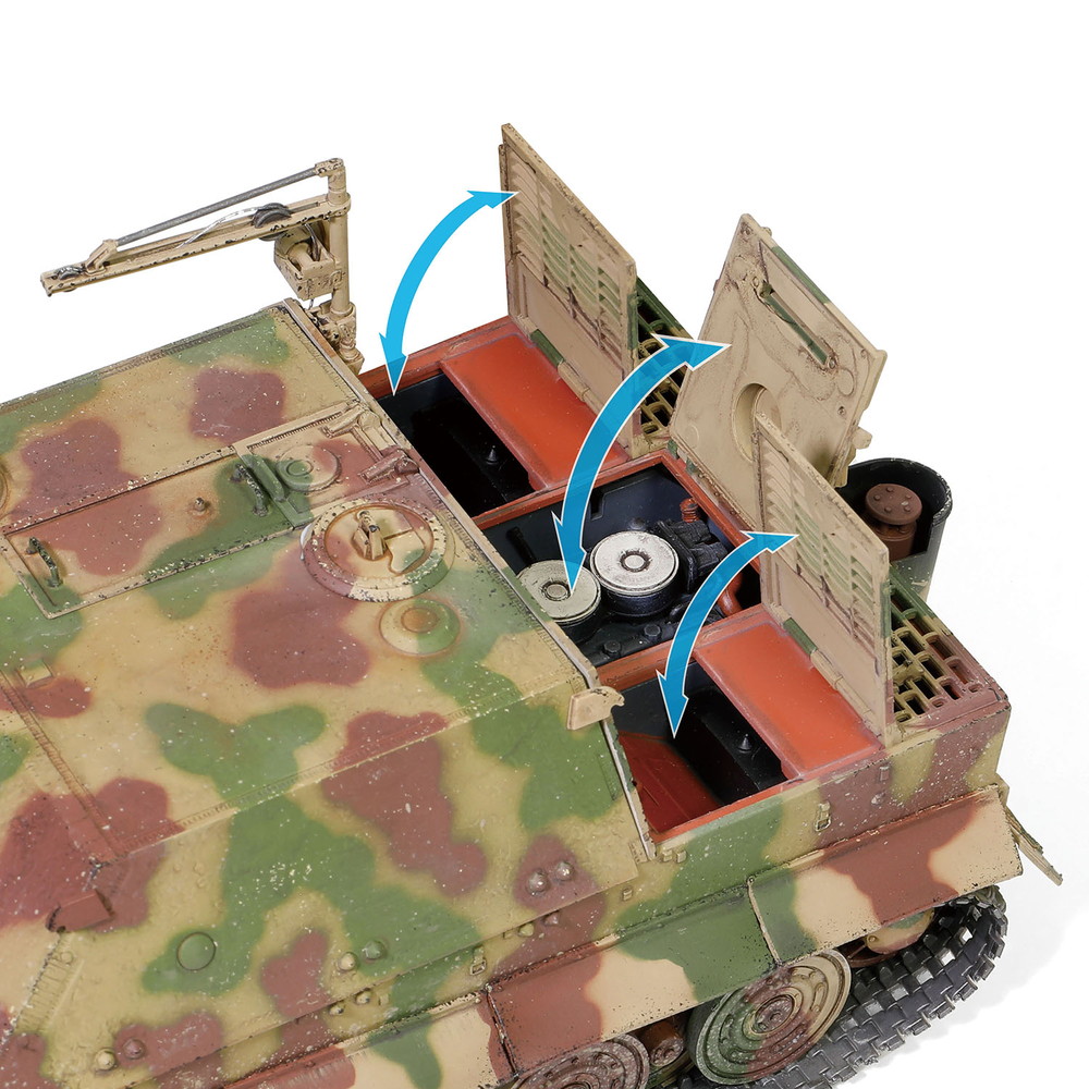 加えて、取外し可能な戦闘室後部パネルで詳細に再現された戦闘室内部を見ることもできます。また、車体後部にはエンジンもモデル化。