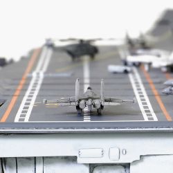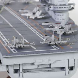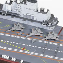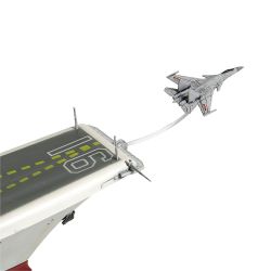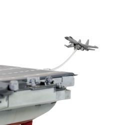 艦底部分はダイキャストパーツで重量感ある仕上がりを演出。スキージャンプ式の甲板形状など、その姿をしっかりモデル化。艦橋前後に装備された2基のエレベーターは上下可動、デッキにある3基のブラストデフレクターはそのうち2基が展開、収納時を差し替えで再現可能です。