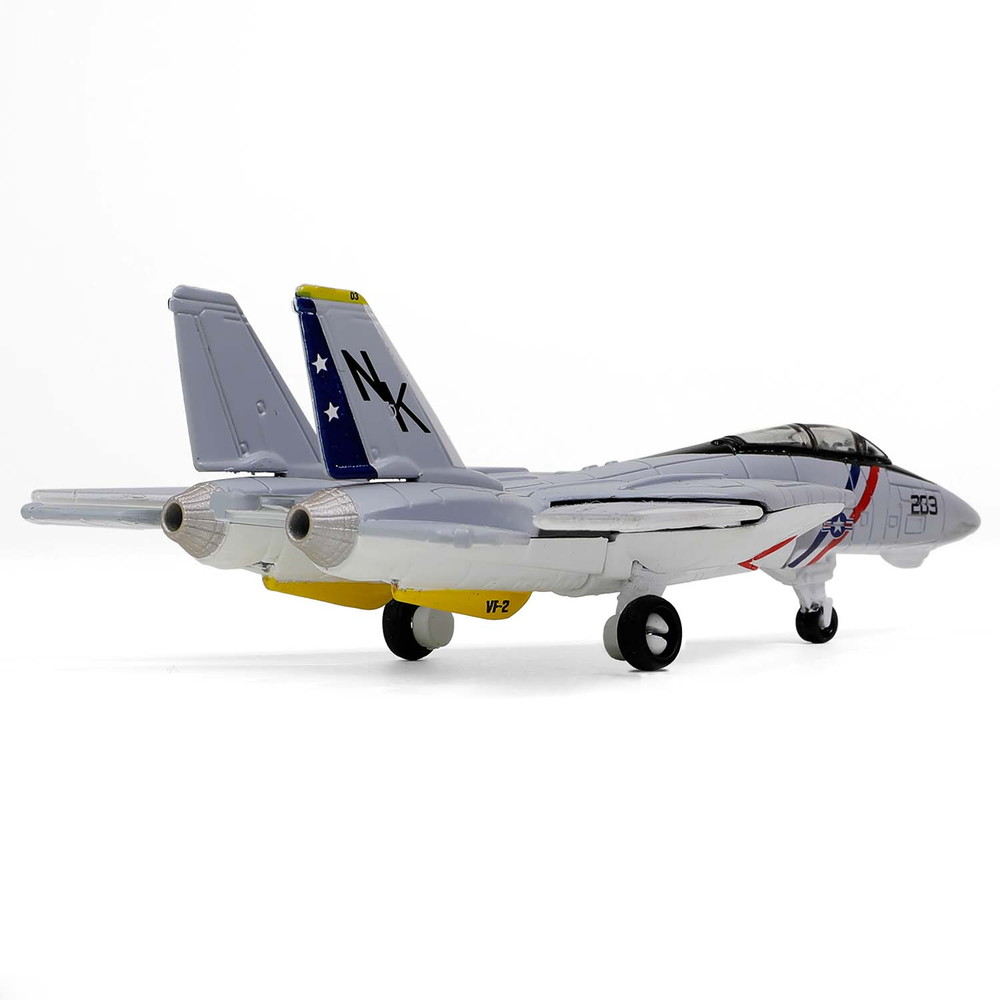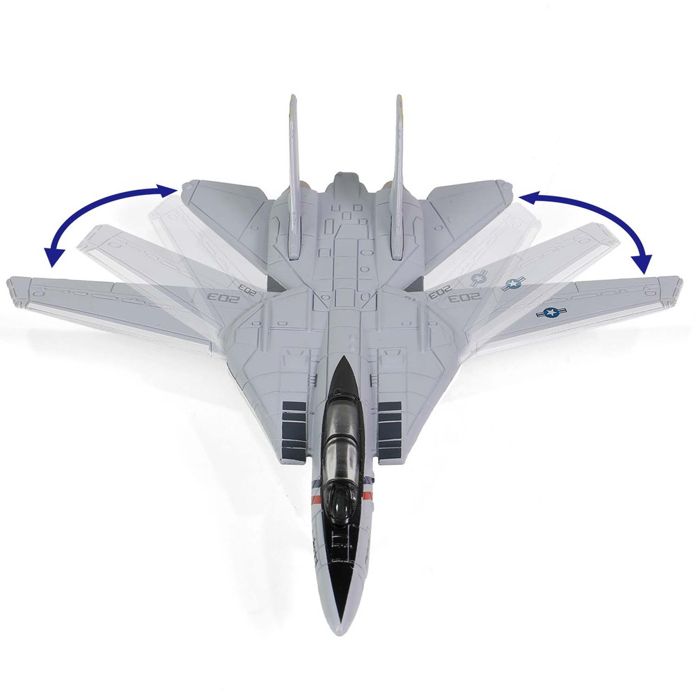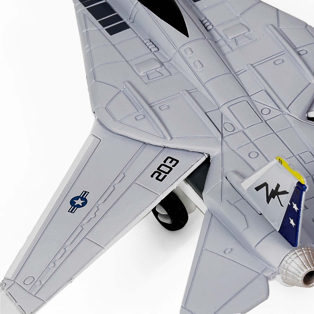 F-14トムキャットは全長約10cmで再現された塗装済みの完成品。コクピットサイドに描かれたストライプや国籍マーク、尾翼のNKの文字などを描いた機体は各部のマーキングを精密なタンポ印刷で表現。