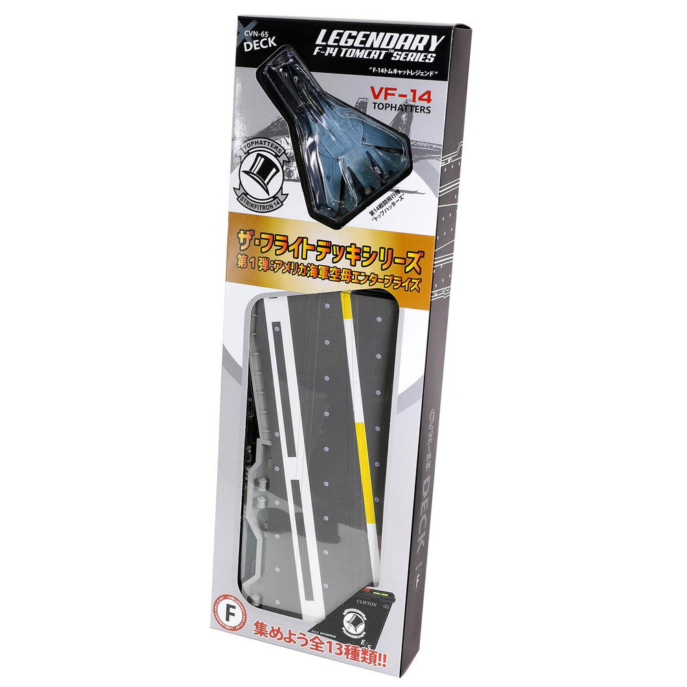 このセットは第14戦闘飛行隊トップハッターズのマーキングを施したF-14トムキャット完成品1機と飛行甲板の先端部分のパーツが入っています。