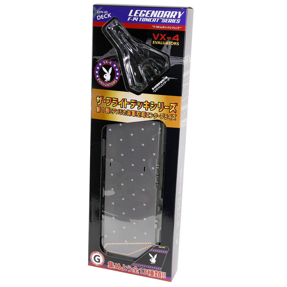 このセットは第4試験評価飛行隊エヴァリュエイターズのマーキングを施したF-14トムキャット完成品1機と飛行甲板の先端部分のパーツが入っています。