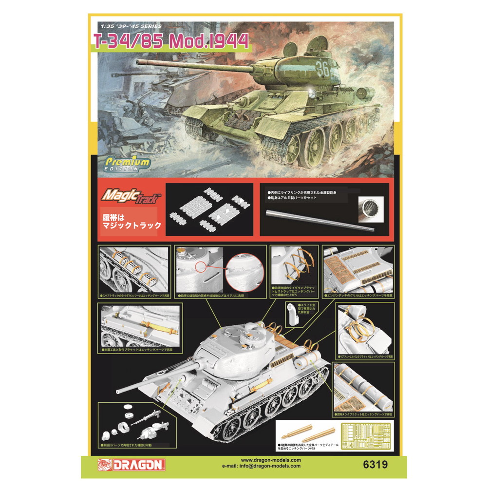 第二次世界大戦から戦後にかけて活躍したソビエト軍の主力戦車T-34の85mm砲搭載型を1/35スケールで再現したプラスチックモデル組み立てキットです。
