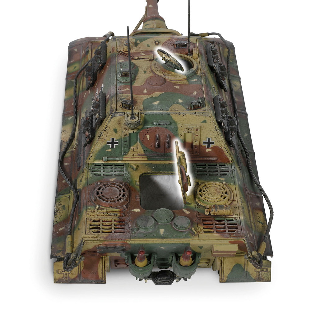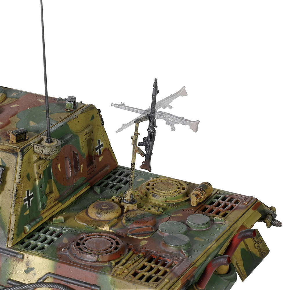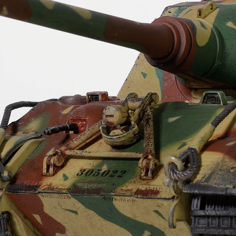 車体のカラーリングは迷彩を再現。ウェザリングもしっかりと施された仕上げが見逃せません。
