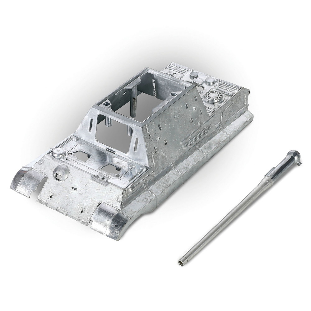 一体成型の車体上部はダイキャスト製で砲身はアルミの削り出しパーツを採用。形状やディテールをリアルに表現するだけでなく、重量感ある仕上がりが実車の迫力を伝えます。