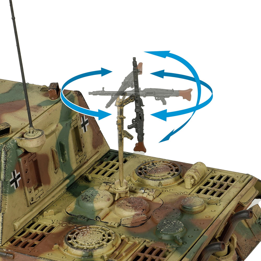 一体成型の車体上部はダイキャスト製で砲身はアルミの削り出しパーツを採用。形状やディテールをリアルに表現するだけでなく、重量感ある仕上がりが実車の迫力を伝えます。