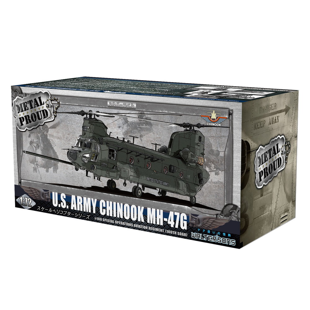 1/72スケールでアメリカ陸軍第160特殊作戦航空連隊、通称ナイトストーカーズが運用するヘリコプター、MH-47Gを再現した完成モデルです。
