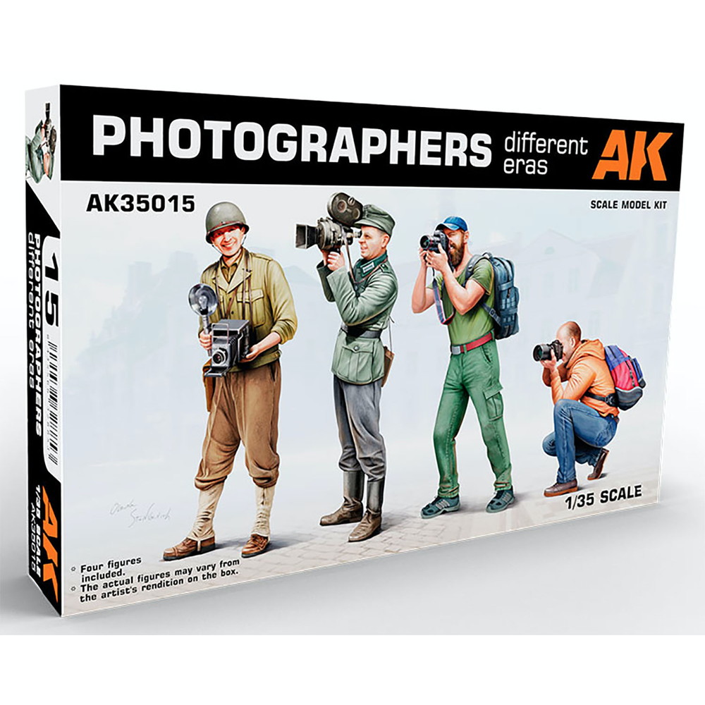 モデルは第二次世界大戦の戦場カメラマンと現代の一般のカメラマンをそれぞれ1/35スケールで再現したプラスチックモデル組み立てキットです。