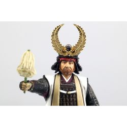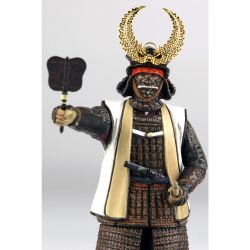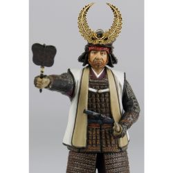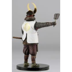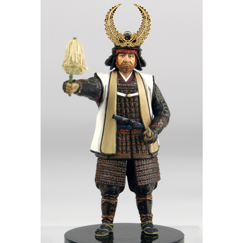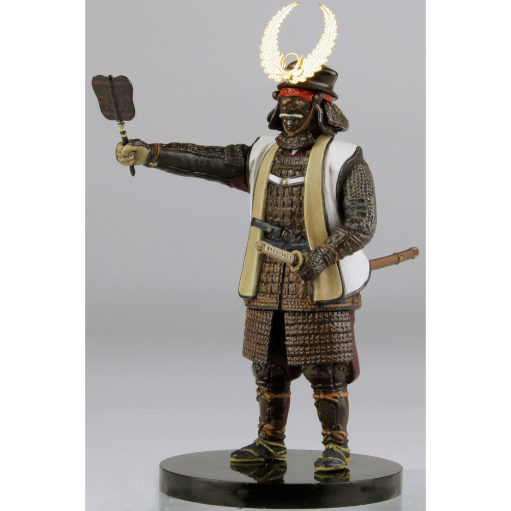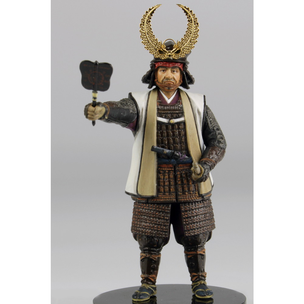 主要部品はレジン製で、レジンならではのディテール表現も仕上がりのリアリティを高めます。前に伸ばした右手は采配、または軍配を選んで持たせることが可能。