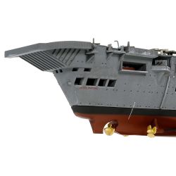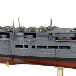 船体はもちろん飛行甲板や艦橋など、上部構造物も詳細にモデル化。艦載機は15機をセット。そのうち4機は主翼を折りたたんだ状態で再現しています。