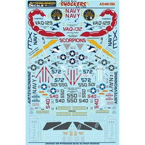 F/A-18FをベースにEA-6Bプラウラーの後継機として開発された電子戦機EA-18G ショッカーを彩るデカール集が登場VAQ-132"スコーピオンズ"からは2010年最新のCAG機とCO機の2機を収録。