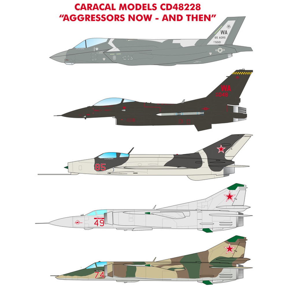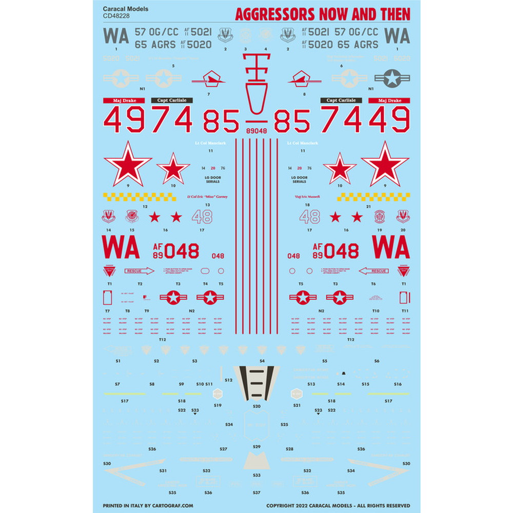 アメリカ空軍のアグレッサー機の今と昔を彩る1/48スケールのモデルに対応したデカールのセットです。