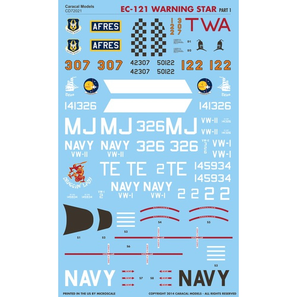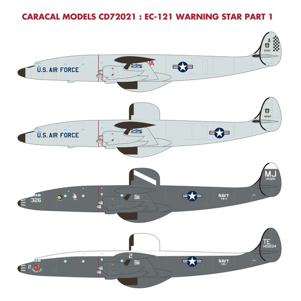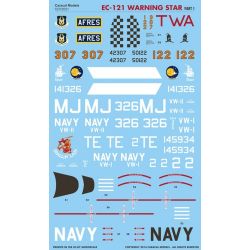このセットはロッキードが旅客機、コンステレーションをベースに開発したアメリカ軍の空中早期警戒機、EC-121ウォーニングスターのマーキングを収録しています。