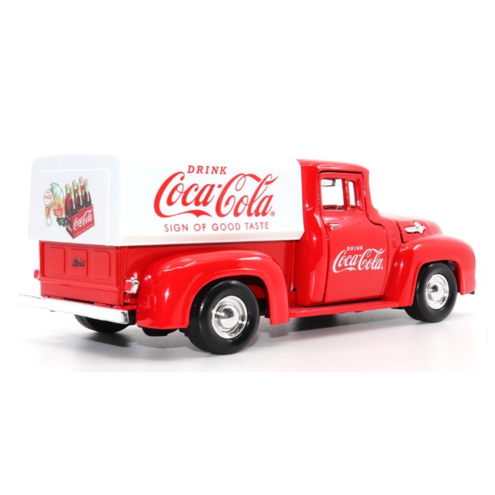 ボディはコカ・コーラのイメージカラーのレッド、防水カバーはホワイトに塗り分けられ、左右ドアパネルとカバーには当時のコカ・コーラのロゴをプリント。コカ・コーラの配達車両を再現します。