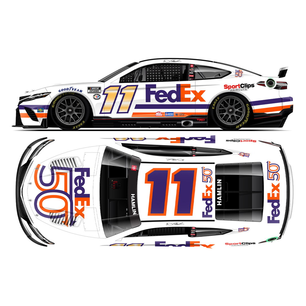 このレースではフェデックスの50周年を祝う特別なカラーリングを施しました。おなじみのフェデックスの3色に塗り分けられたカラーリングと記念ロゴマークがモデルでもしっかりと再現されています。