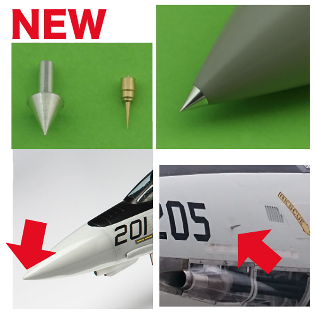 セットに用意されているのはF-14トムキャット初期型の機首に装備されるカバー、ノーズチップとコクピット左側の機体側面に装着されているAOAセンサーを再現したパーツ2点。キットに加えることで完成時のリアリティはもちろん、仕上がりの強度も高めることができます。