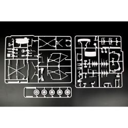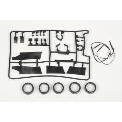 また、軟質プラスチック素材も採用し、パーツの質感も再現。そしてキットにはブレーキディスクなどのディテールアップ用エッチングパーツ、ボディフロントのフィンを再現する金属プレスパーツ、ナイトステージ用補助ライトの取付サポート金属ピンパーツなども入っています。