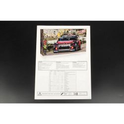 日本語の補足説明書も付属して組み立ては確実。仕上がりの全長は約170mmでワールドラリーカー仕様のオーバーフェンダーを張り出した前後フェンダーや大型のリアウイングなど、迫力あるスタイルをリアルにモデル化しています。