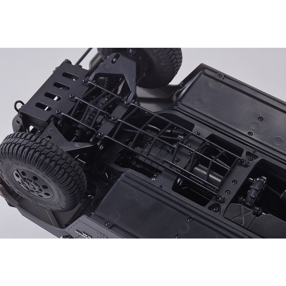 スケール感十分な車体は後部に荷台を持つスポーツ・ユーティリティ仕様のボディスタイルはもちろん、シートやダッシュボードなど、ビッグスケールならではのディテールでインテリアも詳細に再現。シャーシも金属製のラダーフレームやオイルスプリングなど、メカニズムをリアルにモデル化。