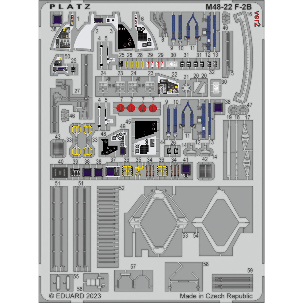1/48スケールF-2Bキットの組み立てに合わせてご利用ください。エッチングパーツは定評あるエデュアルド製。日本語説明書もセットされています。