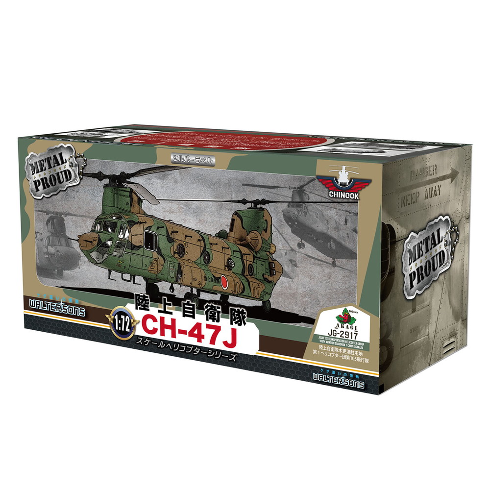 1/72スケールで日本の陸上自衛隊が運用するヘリコプター、CH-47Jチヌークを再現した完成モデルです。
