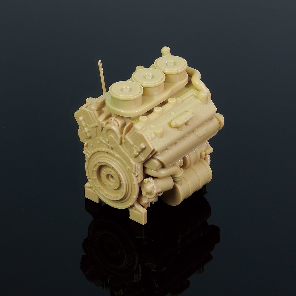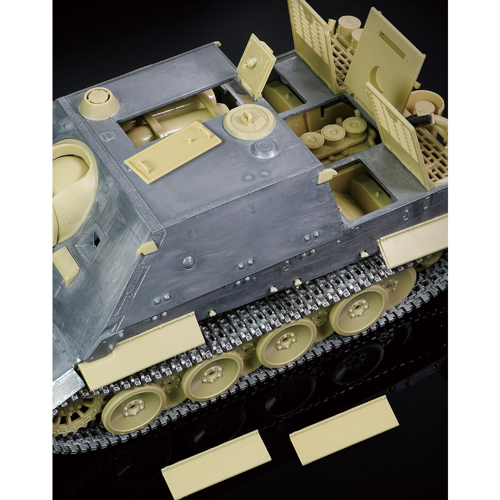 車体上部にはダイキャストパーツ、履帯は金属製、砲身はアルミ削り出しパーツ、車体下部やサスペンションアームなどには樹脂パーツを採用するなど、各種素材を使用したマルチマテリアルキットです。