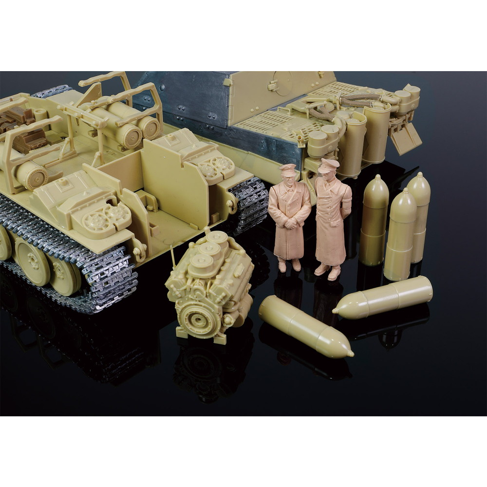 また、外観のみならず戦闘室内部もリアルに再現され、車体後部にはエンジンもモデル化。キットには政治家と軍の高官をイメージしたフィギュア計2体もセットされています。