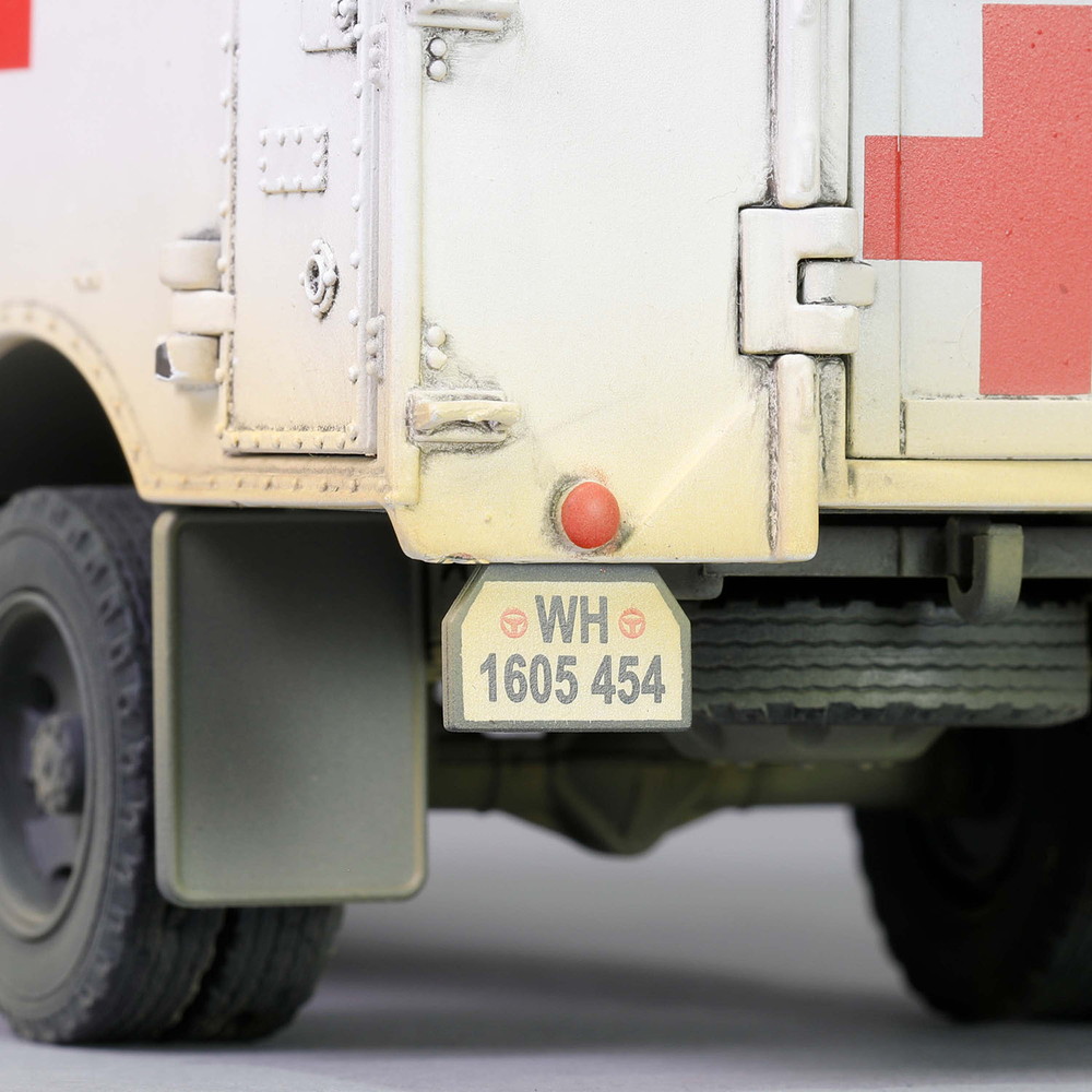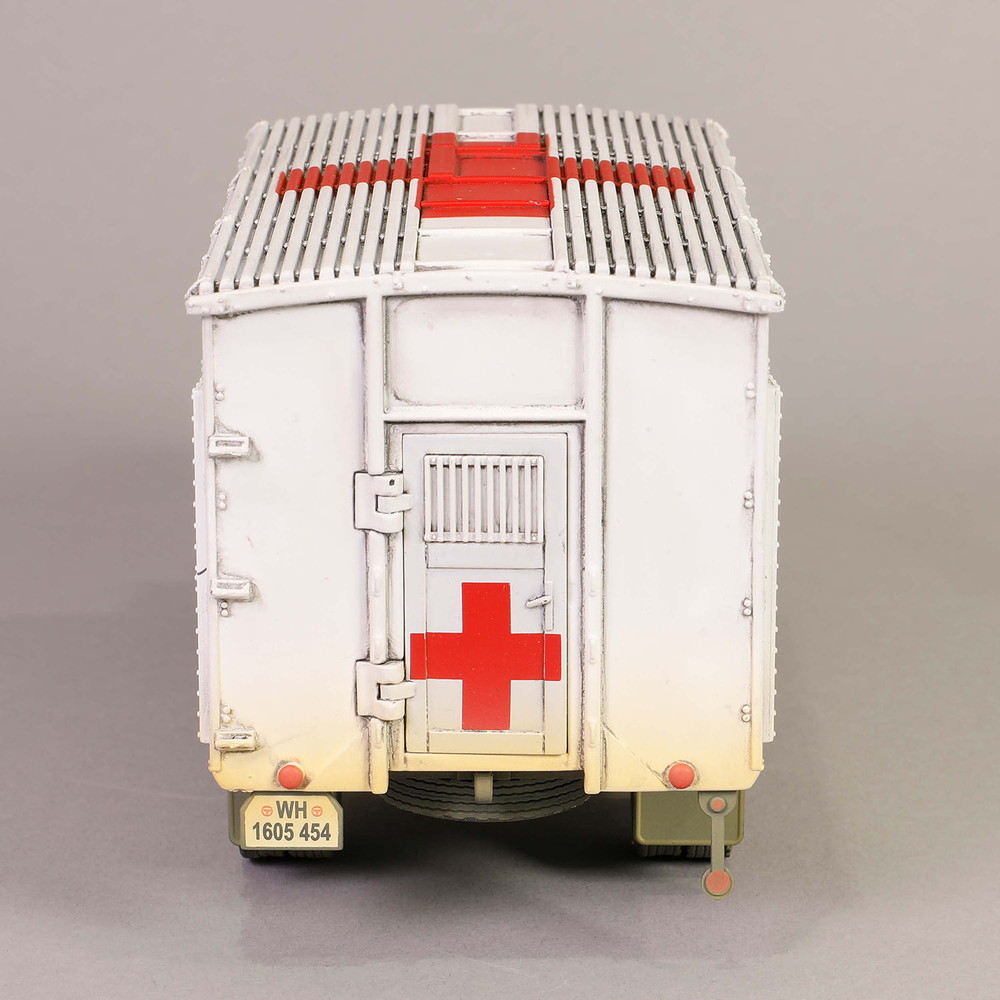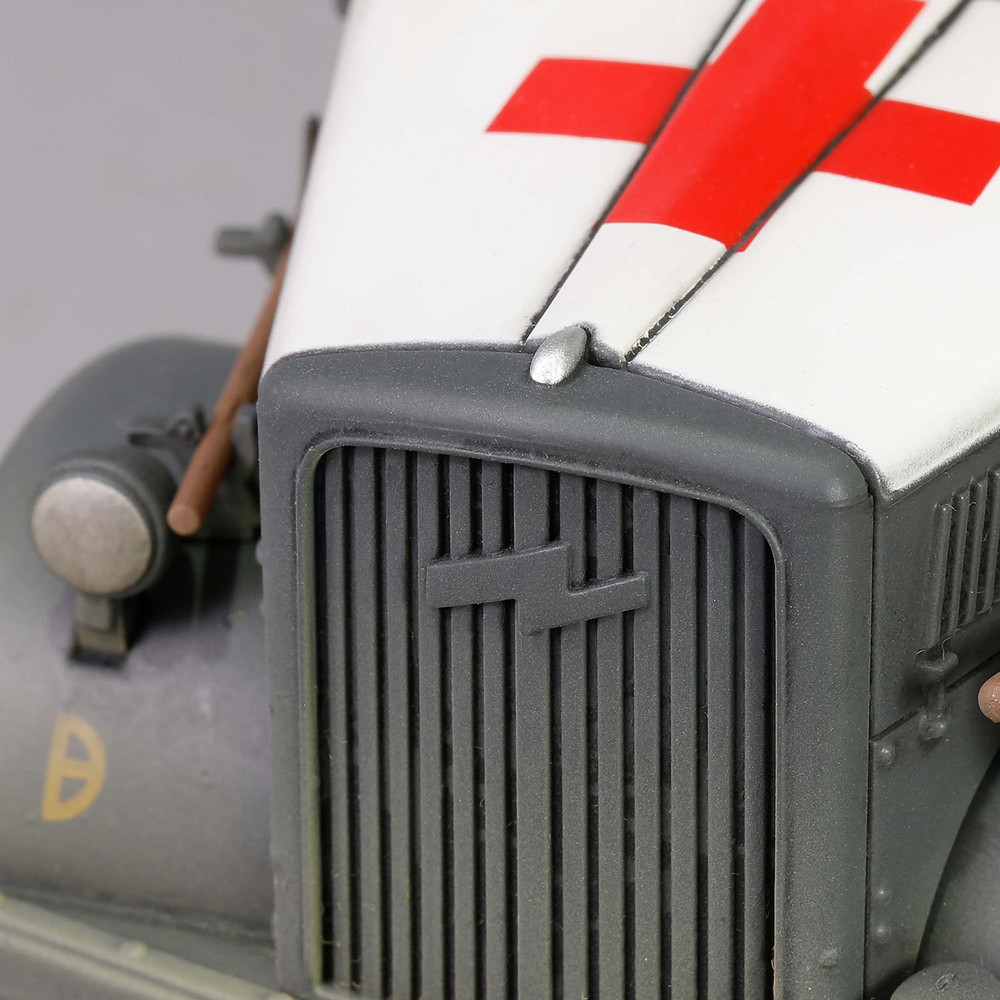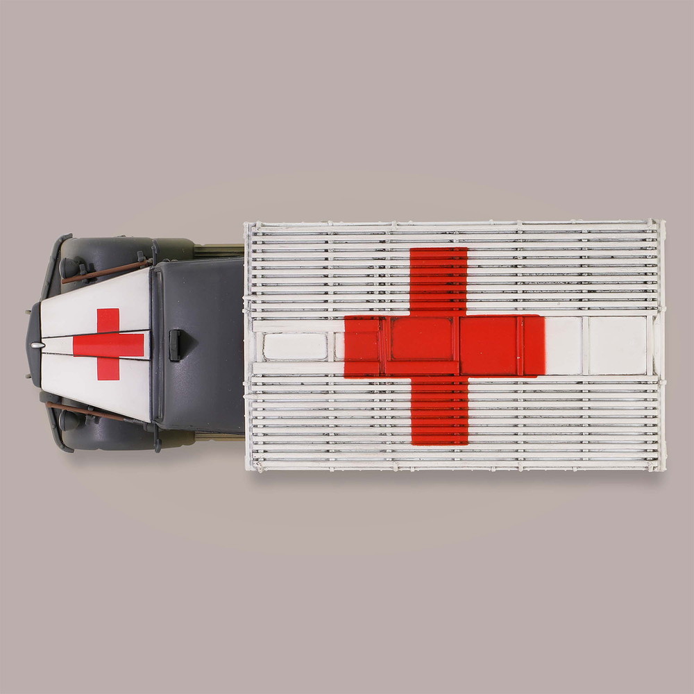 負傷兵などの輸送に活躍した救急車両タイプをモデル化しています。キャビンとシャーシの一部はダイキャスト製の組み立て塗装済み完成モデルです。