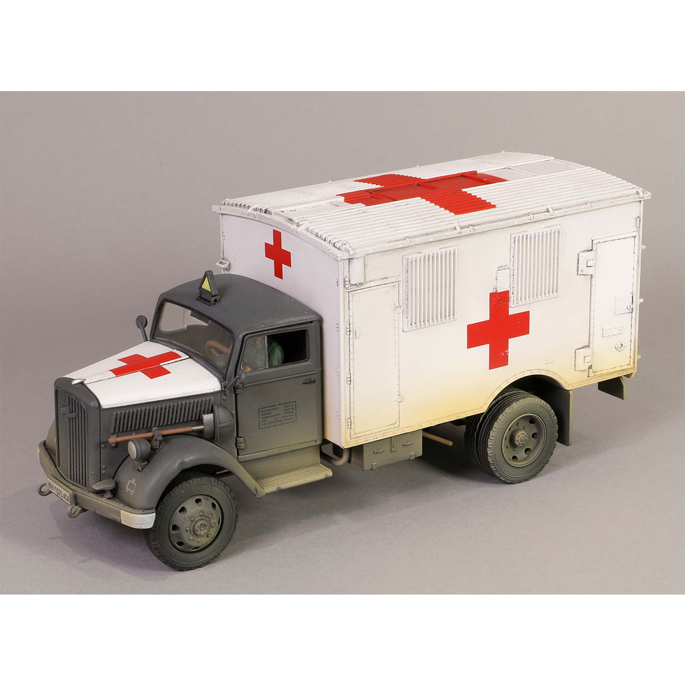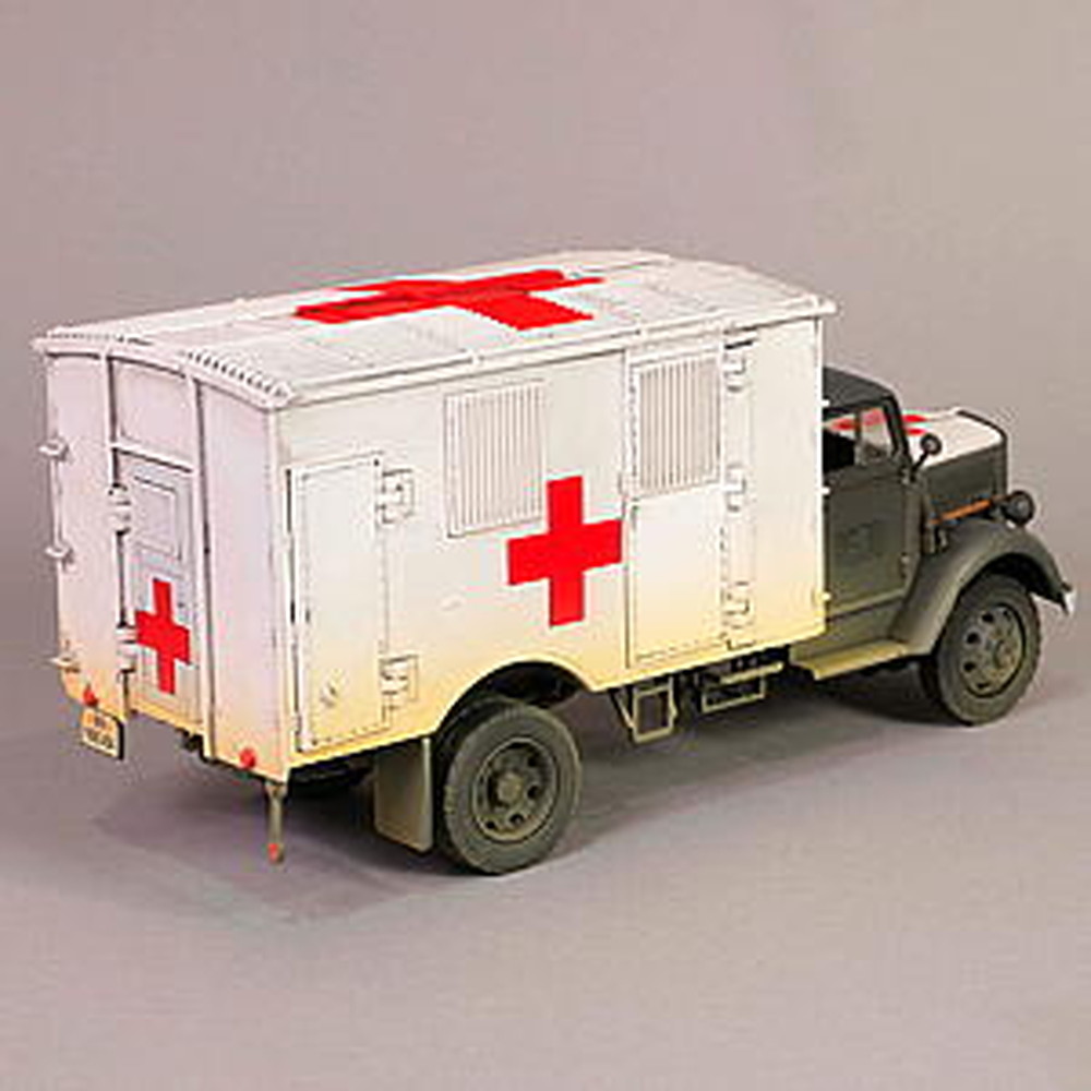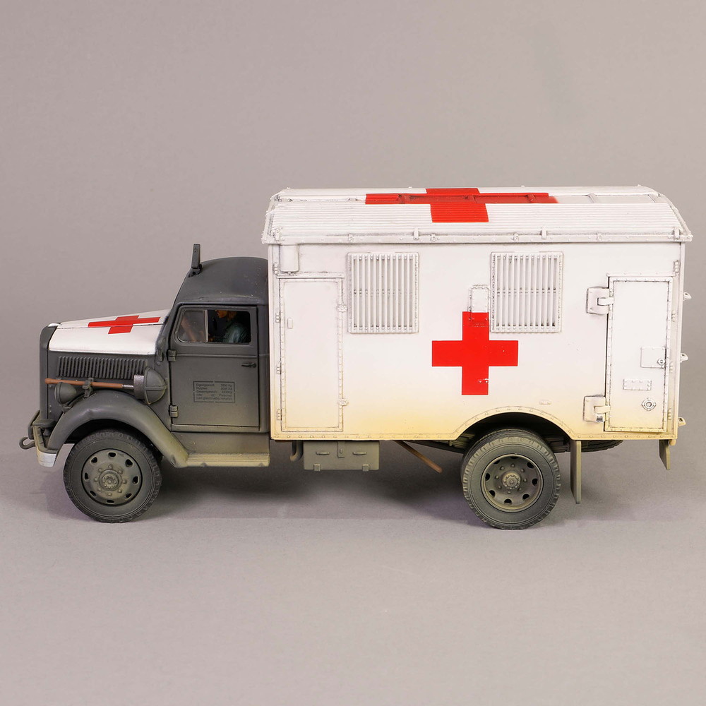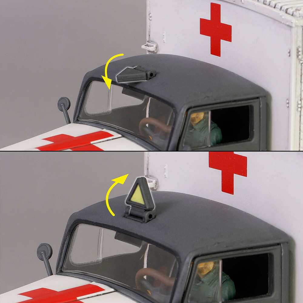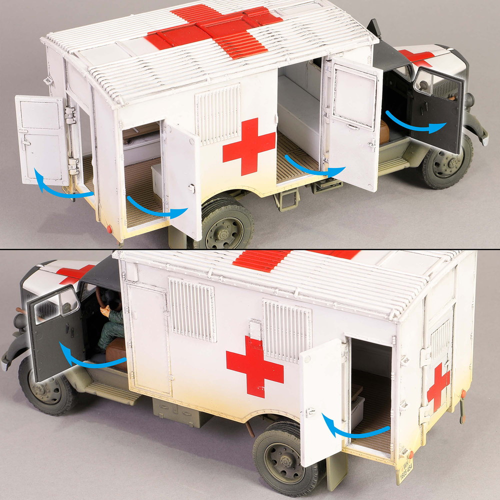 負傷兵などの輸送に活躍した救急車両タイプをモデル化しています。キャビンとシャーシの一部はダイキャスト製の組み立て塗装済み完成モデルです。
