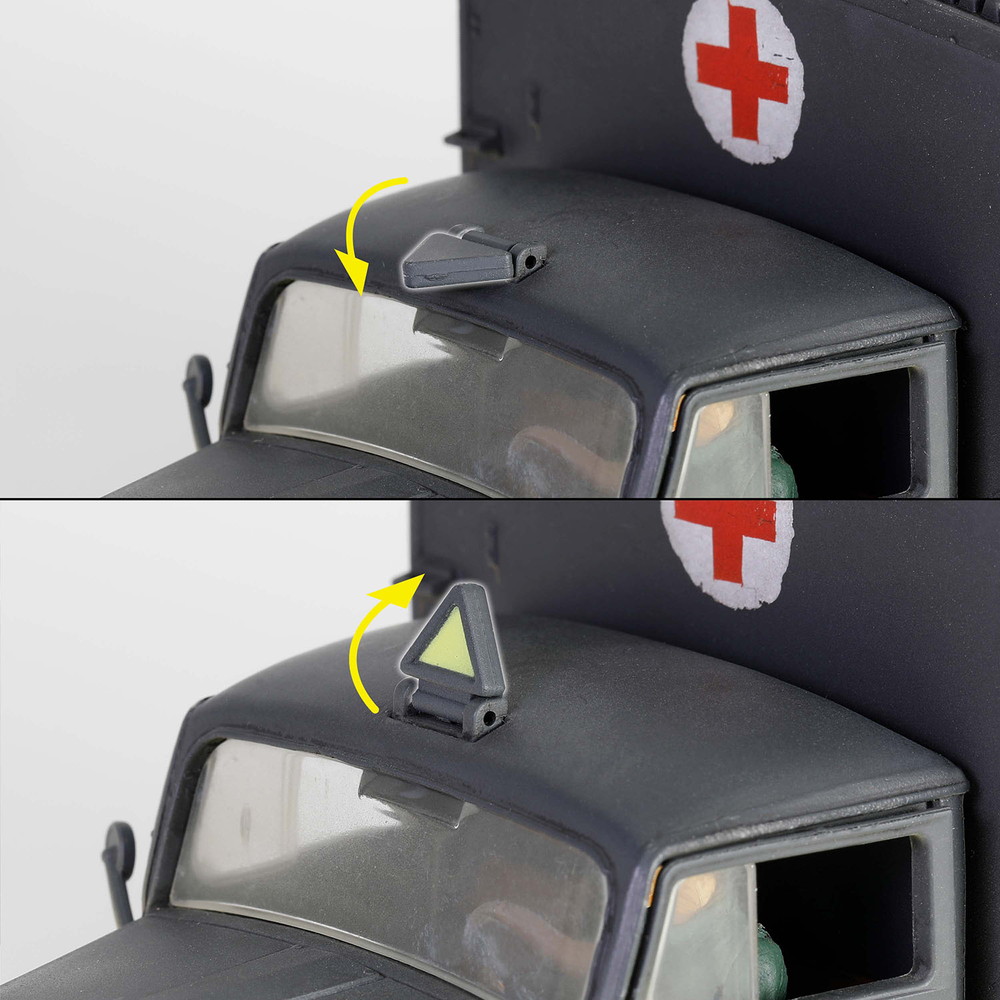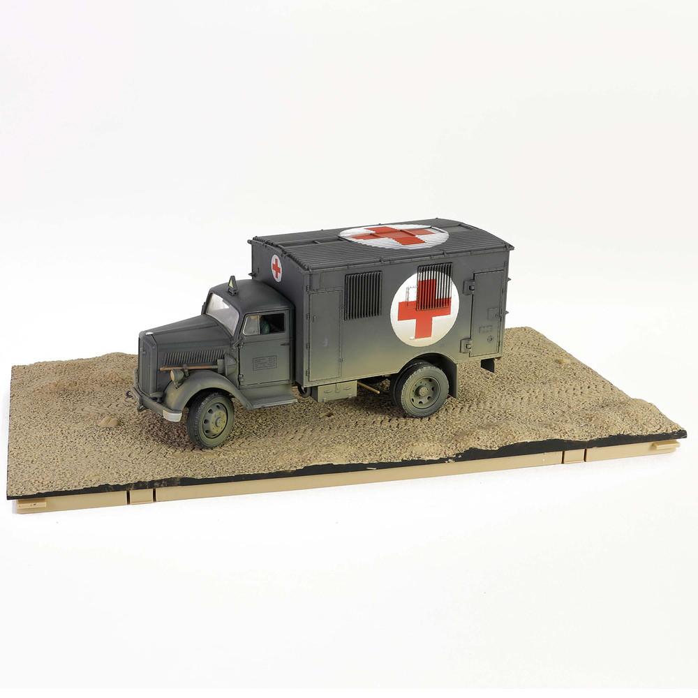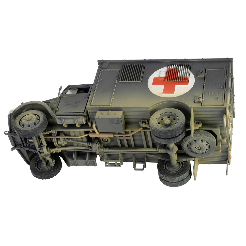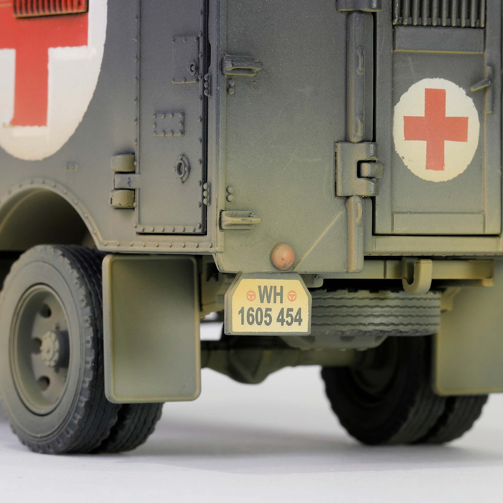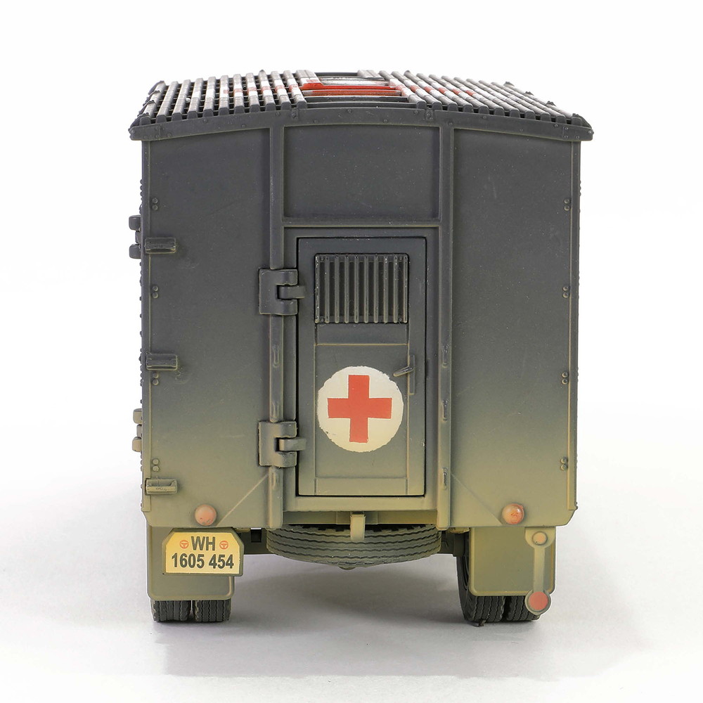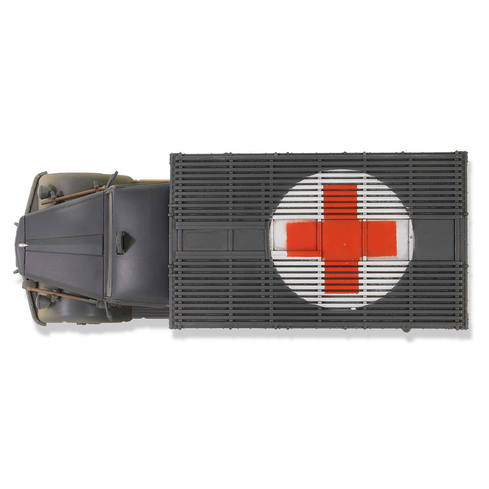 負傷兵などの輸送に活躍した救急車両タイプをモデル化しています。キャビンとシャーシの一部はダイキャスト製の組み立て塗装済み完成モデルです。