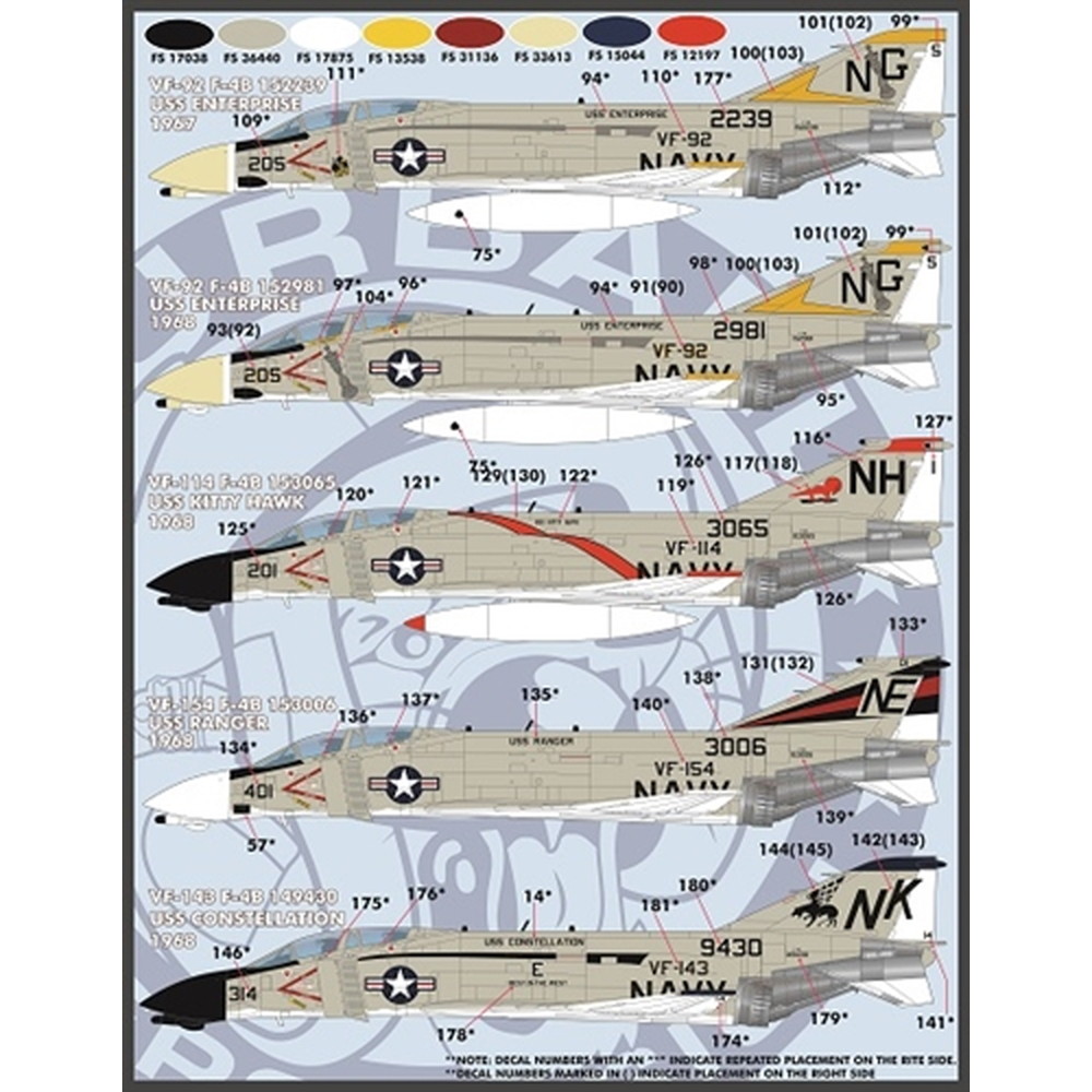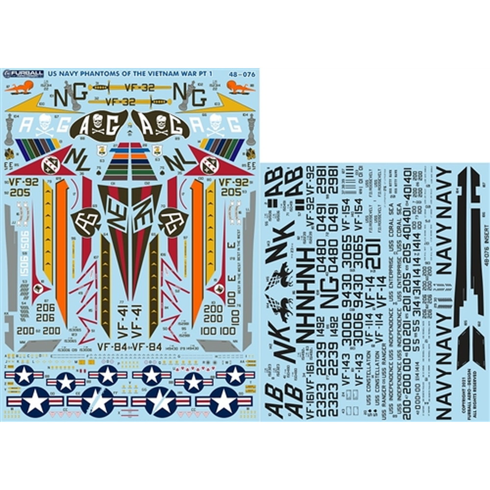 1/48スケール、F-4ファントムのキットに対応し、このセットで2機分のマークがセットされています。