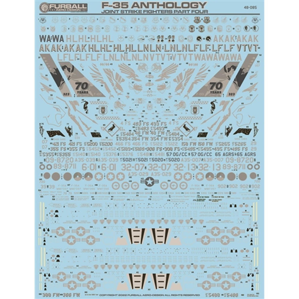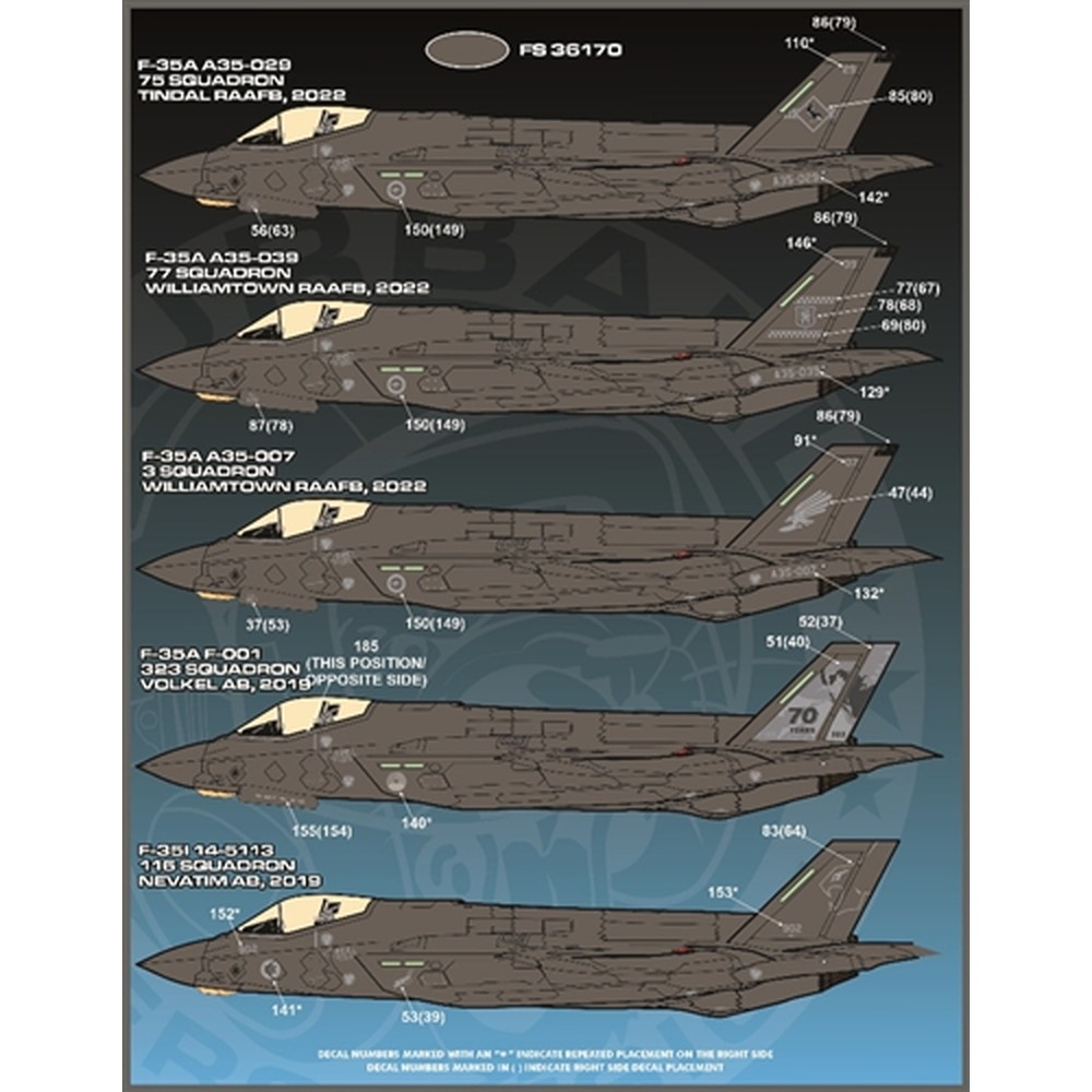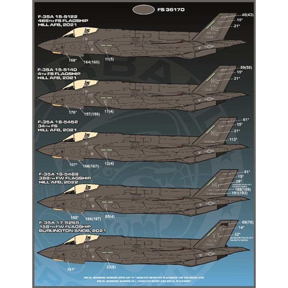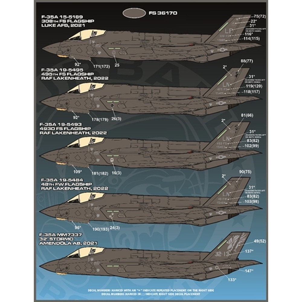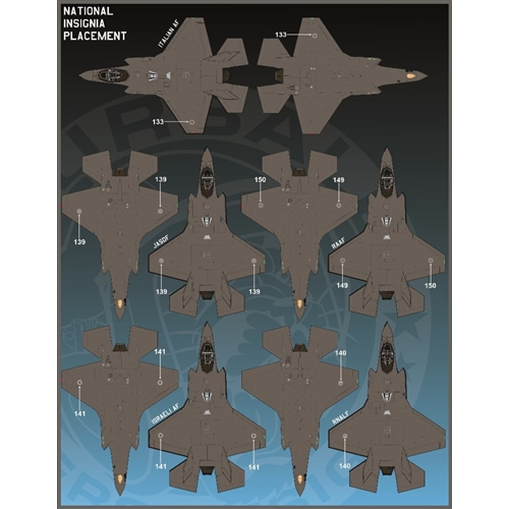 このセットでは最新のアメリカ軍ステルス戦闘機、ロッキード・マーチンのF-35のマーキングを収録しています。中でも空軍仕様のF-35Aをフューチャーし、アメリカ空軍を中心に世界各国で運用されているF-35Aのマーキングを収録。