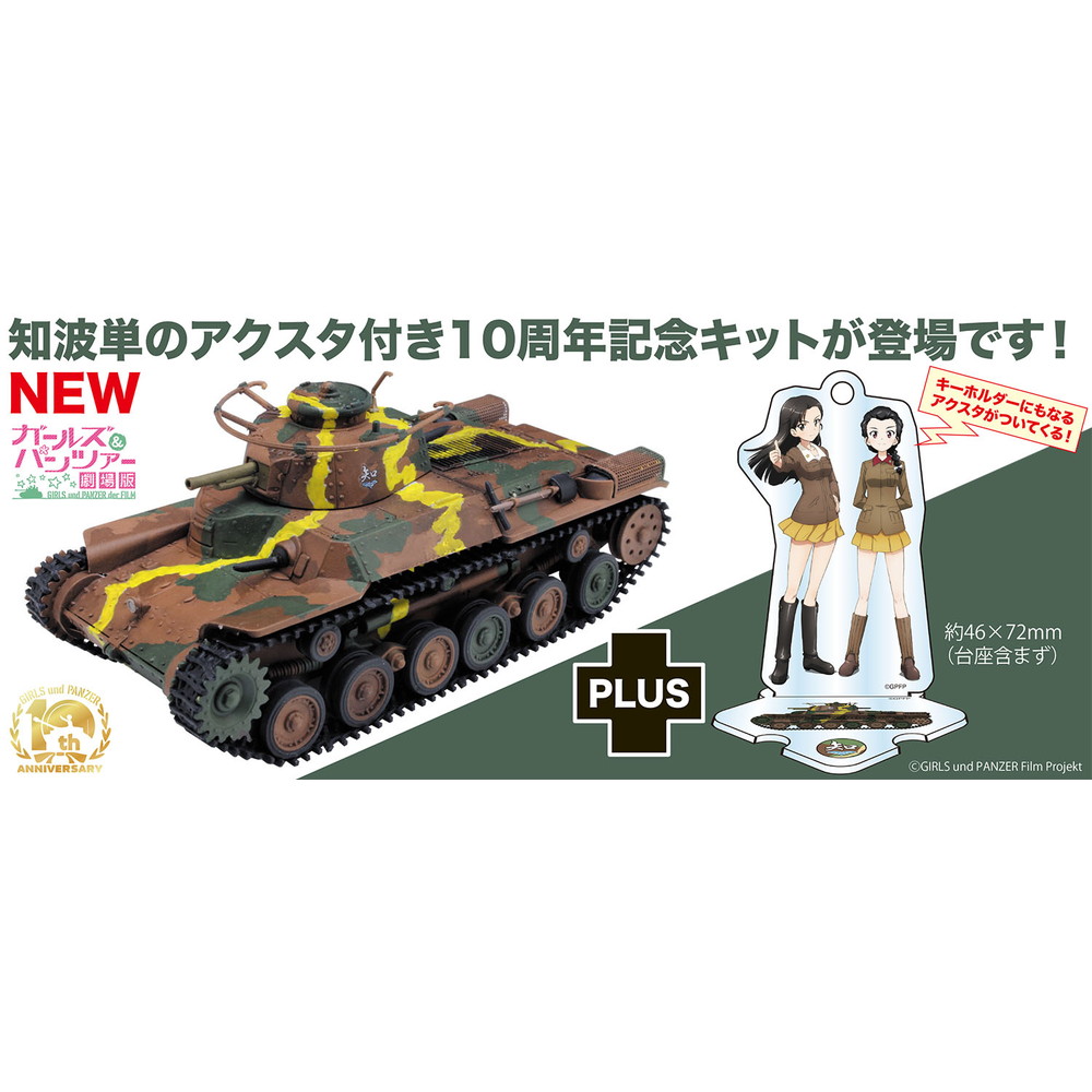 劇場版で登場した知波単学園の主力戦車、九七式中戦車のかわいいアクリルスタンドが付属された10周年記念キットが登場です!