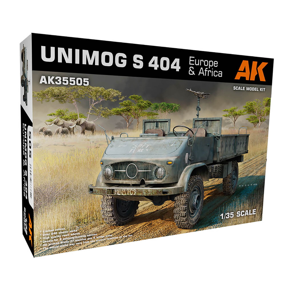 機動力の高さ、汎用性の高さで幅広い活躍を見せるオフロードトラック、メルセデス・ベンツのウニモグを1/35スケールで再現。1955年に登場したS404タイプをモデル化しています。