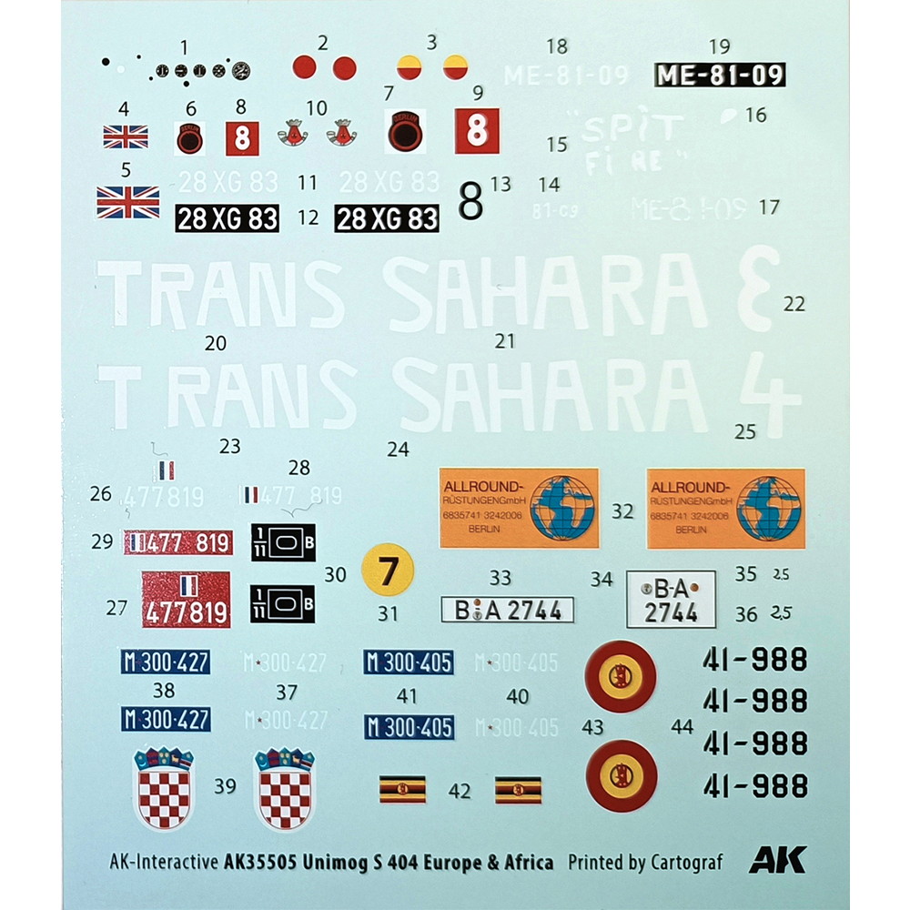 マーキングはイギリス、フランス、クロアチア、ポルトガルの各国軍隊で使用されている車両のマーキングと民間ユーザーによって使用されている車両のマーキング計8種をセット。
