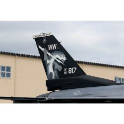 シャープなスタイルは仕上がり全長約6.5cm。そして、マーキングはアメリカ空軍の三沢基地所属の第35戦闘航空団所属機のマーキングから2015年に第20戦闘航空団の機体に描かれたワイルドウィーゼル作戦50周年マーキングにインスパイアされた「イタチ」デザインを描いたマーキングを収録。WWのテールコードなどのマークもしっかりと再現します。