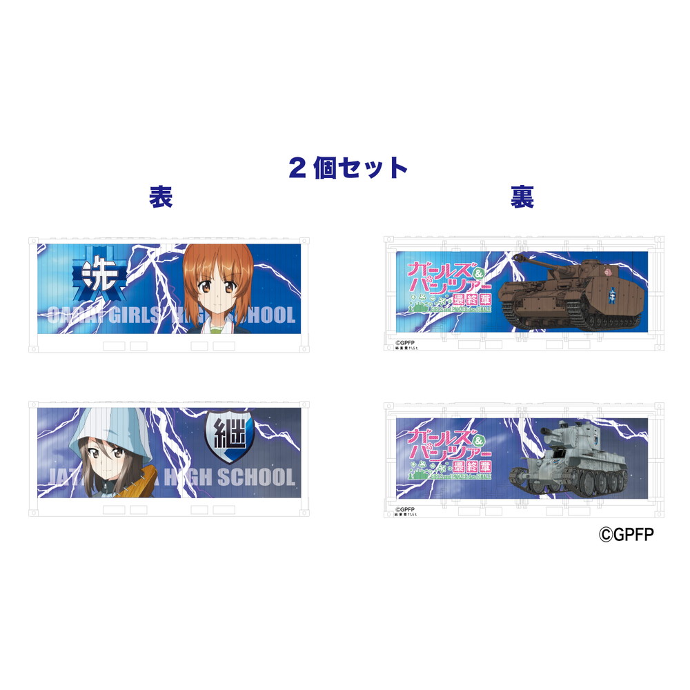2個のコンテナそれぞれの表面には、大洗女子学園・あんこうチームと継続高校・戦車道チームの各リーダー、西住みほとミカが、また裏面には各校の戦車が高精細インクジェット印刷されています。