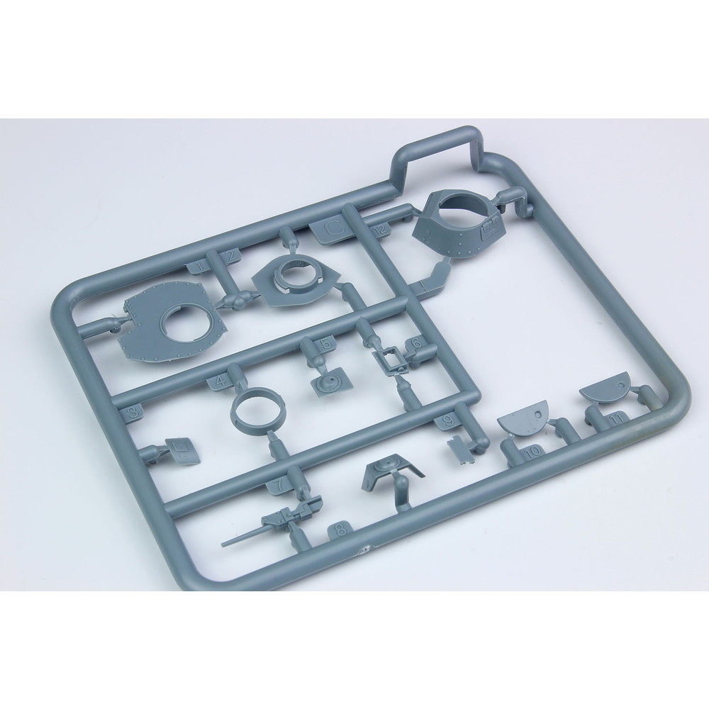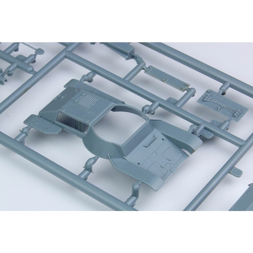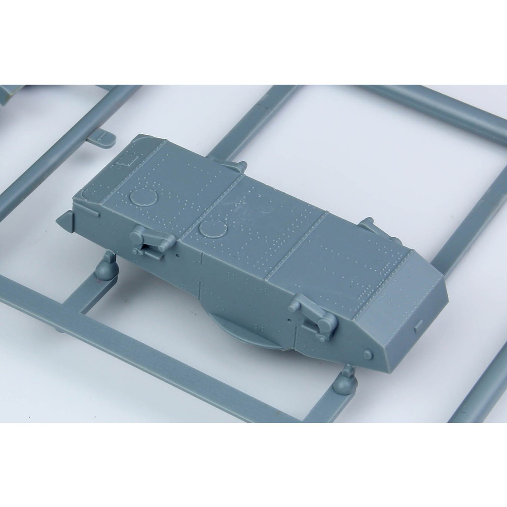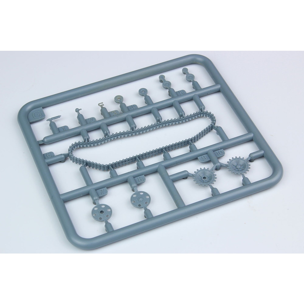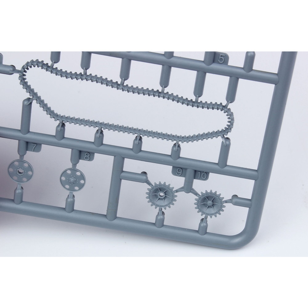 スライド金型を使った車体下部は下面のディテールも詳細に表現。転輪やサスペンションもパーツを抑えた構成。履帯は一体で成型され、組み立ても確実です。