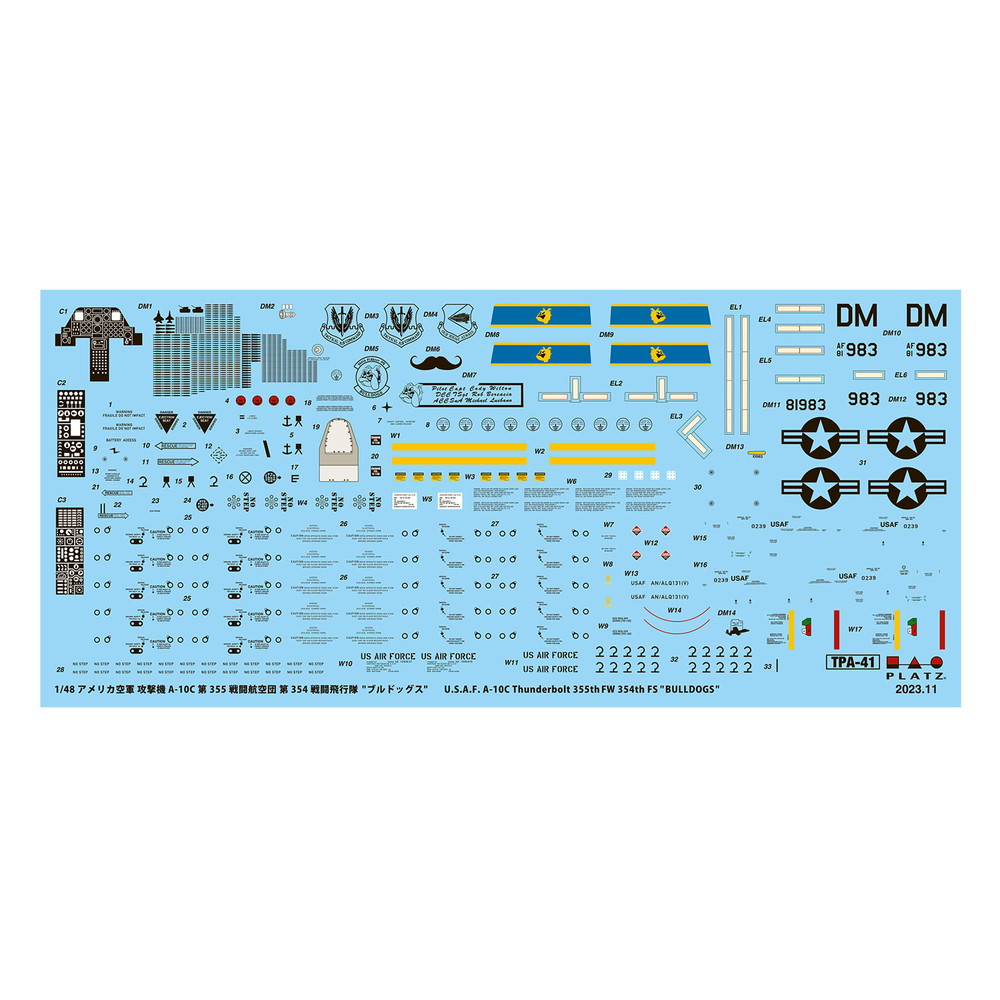 マーキングはアリゾナ州のデイビス・モンサン空軍基地にベースを置くブルドッグスの愛称で知られる第354戦闘飛行隊の機体からセレクト。コクピット右側に描かれたユニークなミッションマークがデカールで再現され、仕上がりの目を引く1機です。