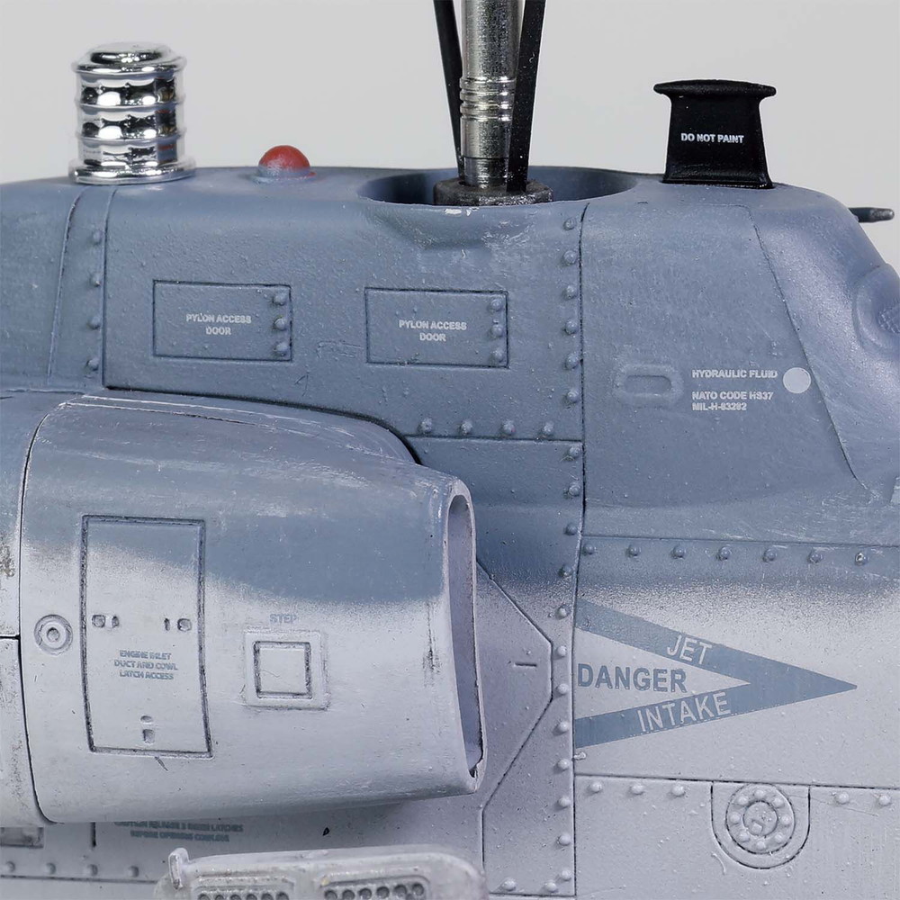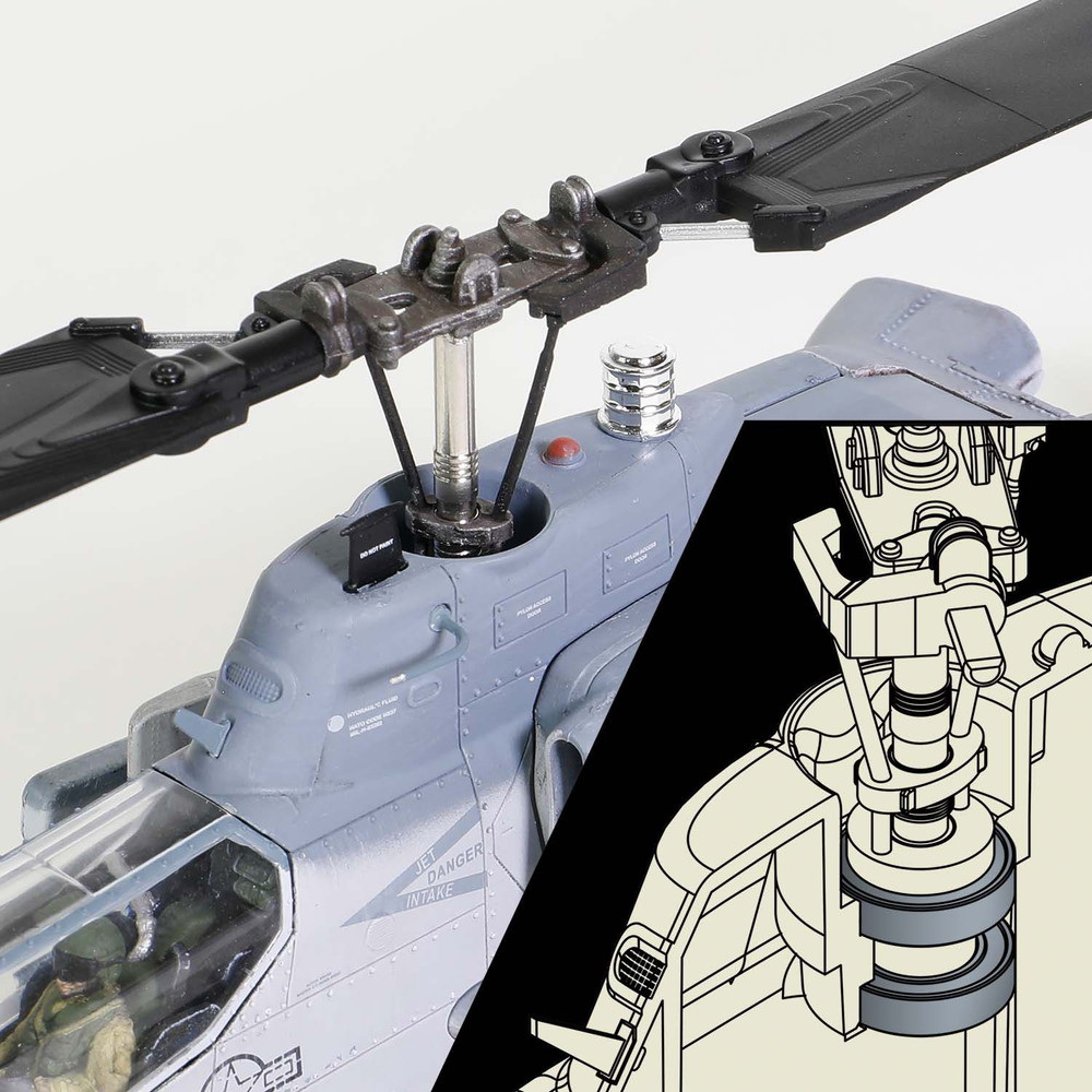 パネルラインの再現も実機をそのまま詳細に再現。また、ローターは回転可能でブレードは取り外しも可能。エンジンカバーは開閉可能で内部にはエンジンのディテールも再現しています。