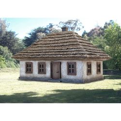 このモデルはウクライナの伝統的な民家を再現しています。土壁に茅葺き屋根の伝統的なスタイルです。モデルは1/72スケールで塗装済みのレジンキャスト製完成品。