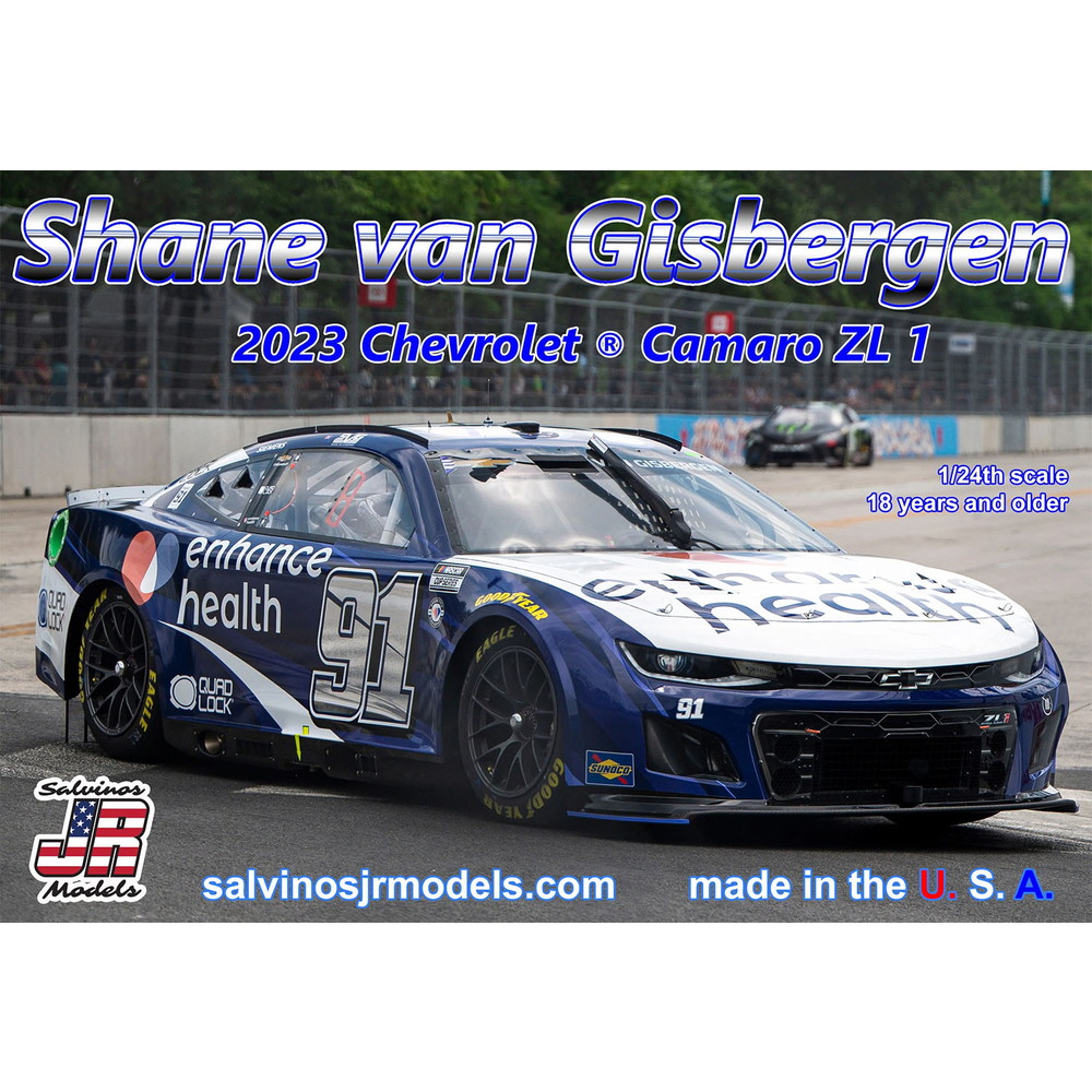 モデルは2023年シーズンのNASCARカップシリーズでトラックハウス・レーシングのドライバー、シェーン・ヴァン・ギスバーゲンがドライブして7月のシカゴでのレースで優勝したシボレー カマロをサルビノスJRモデルズのオリジナル金型で再現した1/24スケールのプラスチックモデル組み立てキットです。