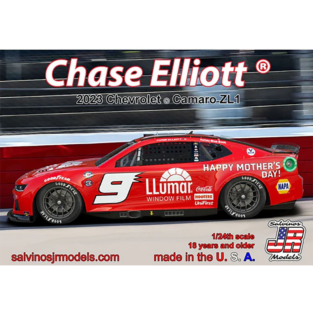 モデルは2023年NASCARに参戦するチェイス・エリオットがドライブしたシボレー・カマロをサルビノス・モデルがオリジナル金型で再現した1/24スケールのプラスチックモデル組み立てキットです。