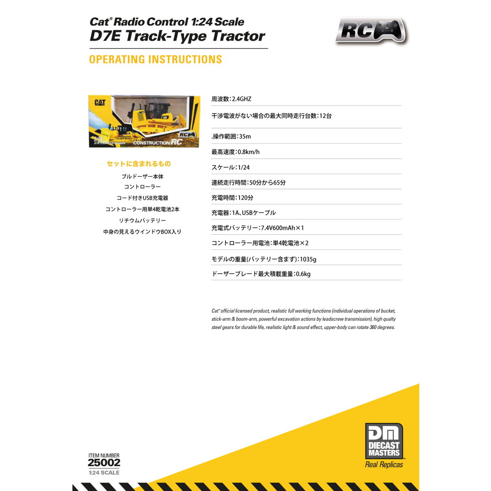 キャタピラー社がラインアップするブルドーザのひとつ、CAT D7Eを1/24スケールで再現した塗装組み立て済みの完成モデルです。