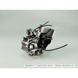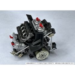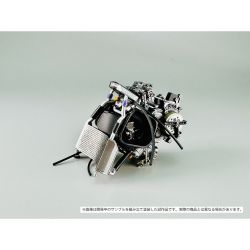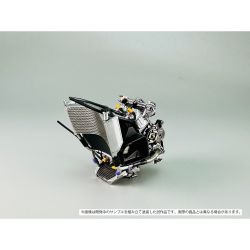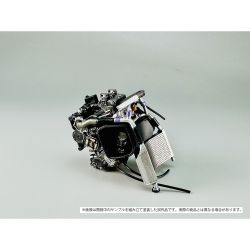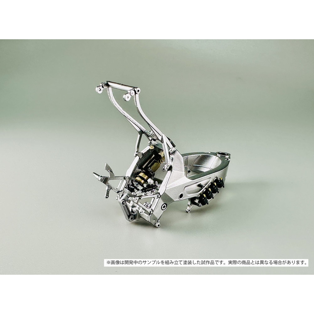 スケールは1/12。ツインスパーフレームに前後サスペンション、V型4気筒エンジンまで、レーシングバイクのメカニズムを詳細に再現しています。