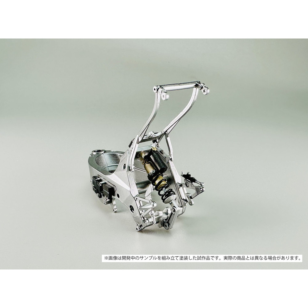 チェーンは貼り合わせの2パーツ構成でチェーンの隙間も表現され、正確にモデル化されたスイングアームなどとともに仕上がりの実感を高めます。