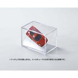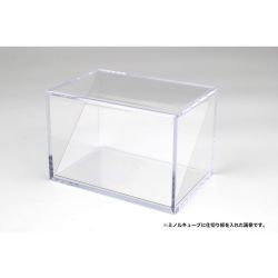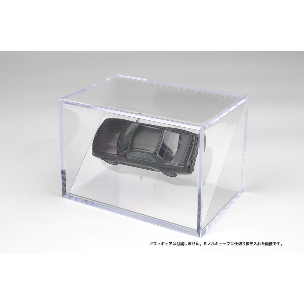 ●四角い透明ケースの中に斜めにセットされた仕切り板へ展示品をセットすることで、空中に浮いたような表現も可能