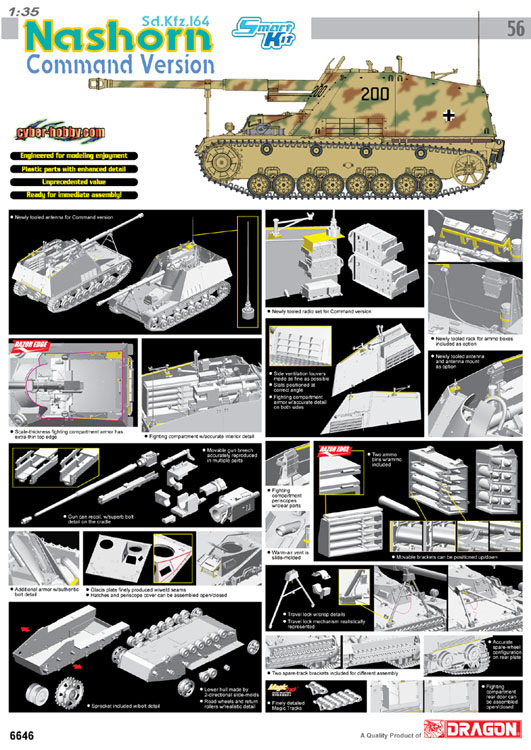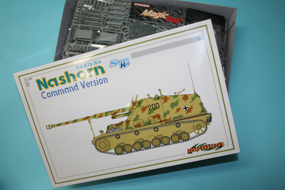 第二次世界大戦でドイツ軍が配備した自走砲、ナースホルンの指揮車タイプを1/35スケールで再現したプラスチックモデル組み立てキットです。